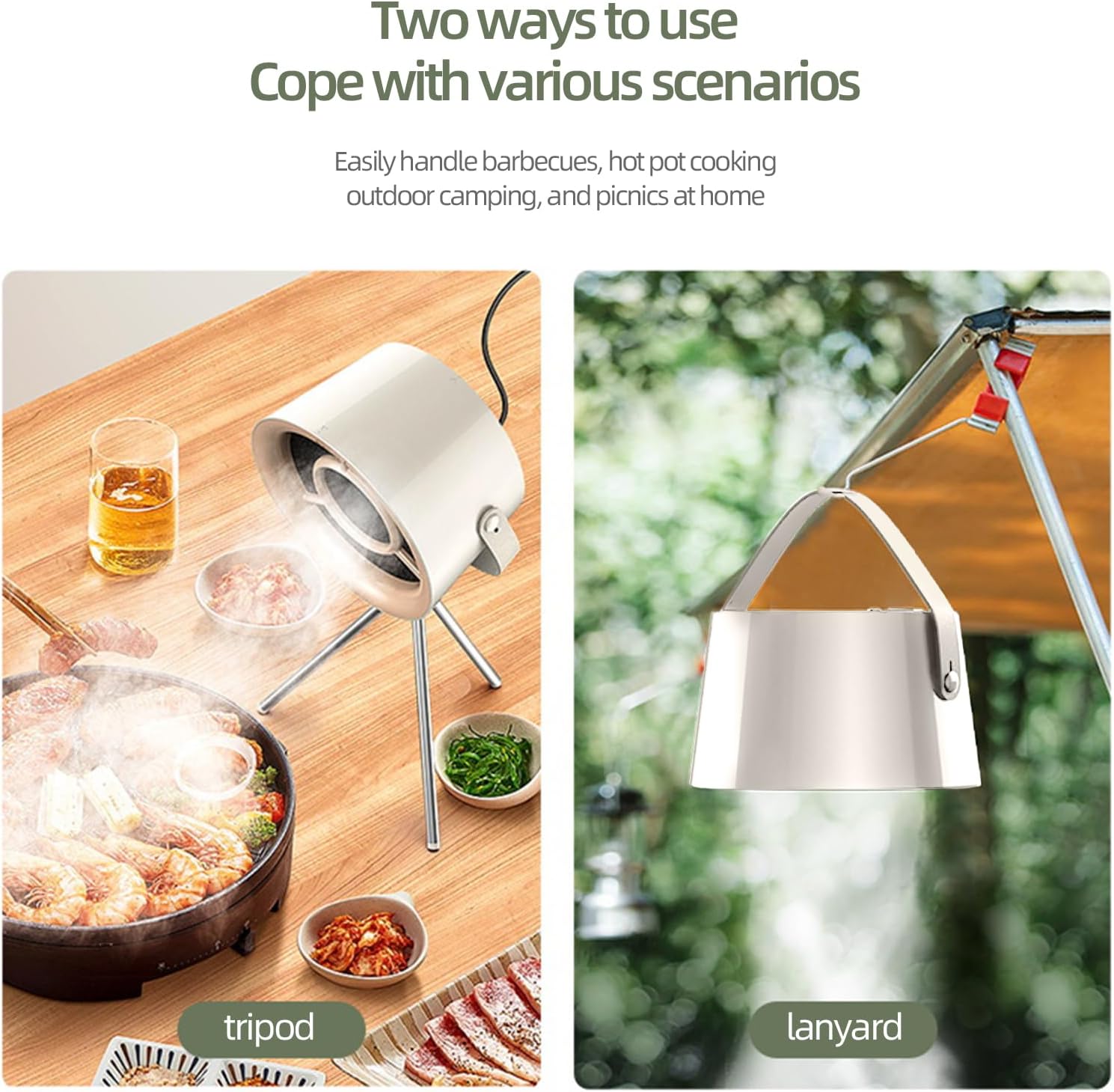 Even hang it by your outdoor table for BBQs or hot pot nights. No installation nightmares. No ductwork.